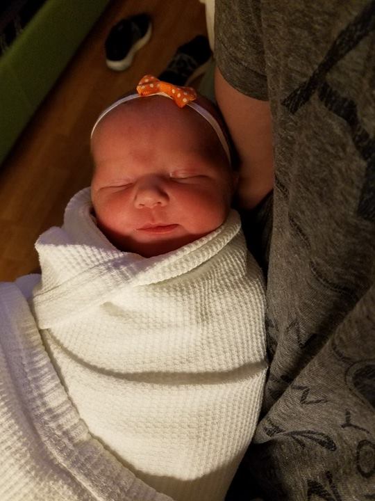 Once my midwife got there it was immediately go time. Because I could no longer feel my contractions at all she told me when to push. I started pushing at about 1, possibly a minute or two after, and after 3 sets of 3 pushes little Ella entered the world at 1:08 PM. The love was instant as she was placed on me. She took a few seconds before she let out her first cry, but she was absolutely perfect. They took her away to wipe her off and weigh her and as they had her on the other side of the room I couldn't help but ask if she really was a girl (I was so worried the whole pregnancy that she was going to come out a boy even after 3 ultrasounds that all said girl). Everyone laughed as they said yes and brought her back to me.
